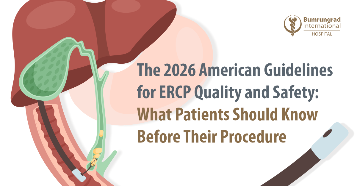 Bumrungrad International Hospital, ERCP is performed within an evidence-based clinical pathway aligned with the 2026 ACG and ASGE quality indicators. Procedures are led by U.S.-trained advanced endoscopists educated under guideline authors and supported by a fully integrated multidisciplinary team, advanced technologies such as SpyGlass cholangioscopy, and comprehensive post-procedure monitoring.