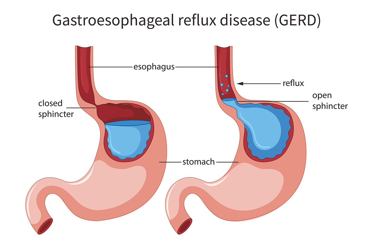 Gastroesophageal reflux disease (GERD) is a common condition in which the gastric contents move up into the esophagus. Reflux becomes a disease when it causes frequent or severe symptoms or injury. Reflux may damage the esophagus, pharynx, or respiratory tract.