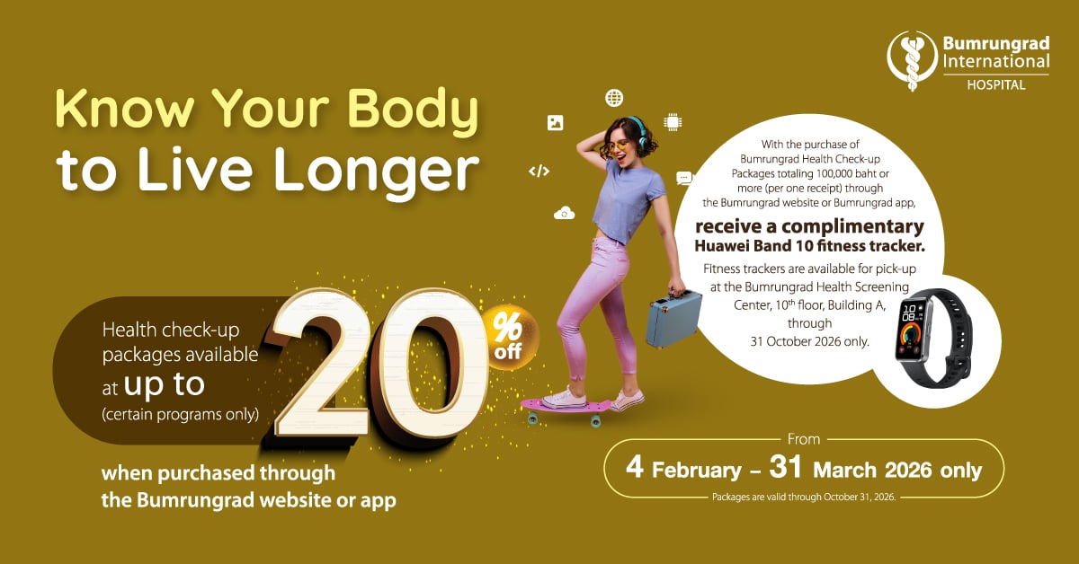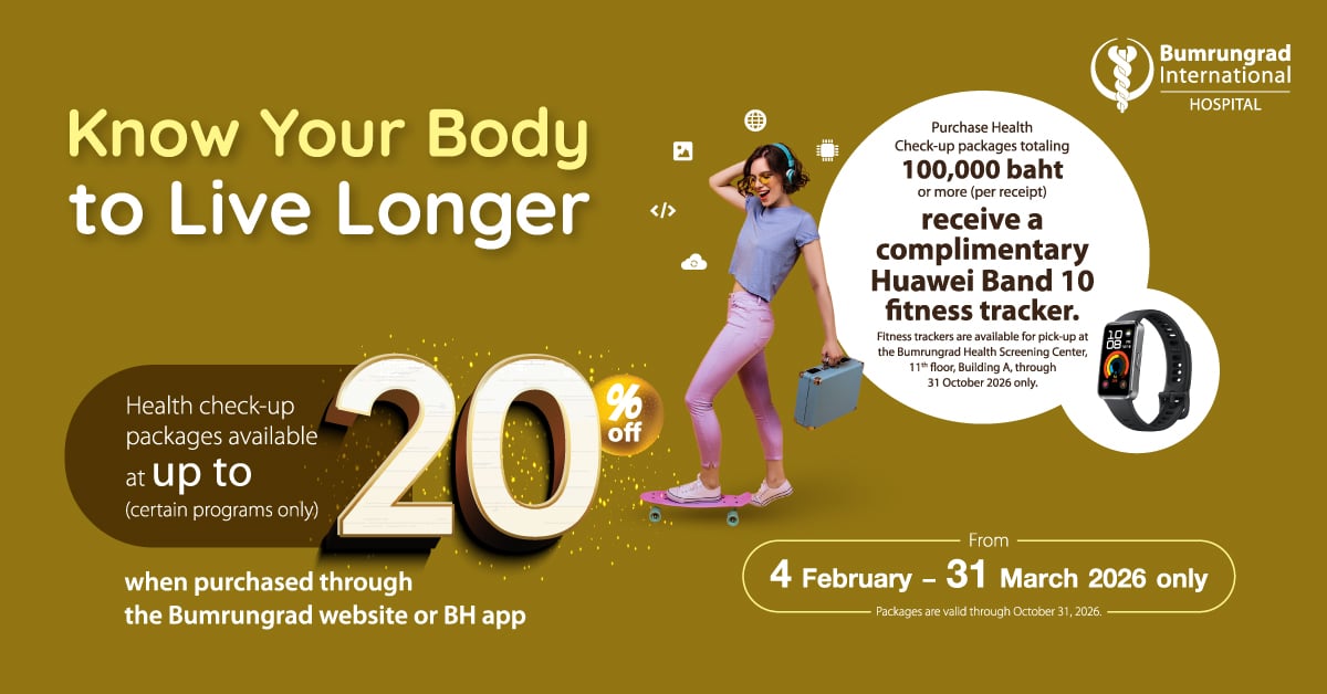 - If you are eligible to receive a HUAWEI Band 10 fitness tracker with your health check-up purchase, you will be given an e-voucher for the fitness tracker; please present your e-voucher at the Health Screening Center (Check-up) to redeem your HUAWEI Band 10 (valid through 31 October 2026 only). Health Screening Center (Check-up) – Tel. 02 011 3102–3.