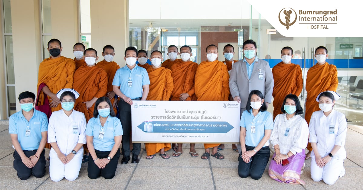 バムルンラード病院創立42周年及びタイ看護師の日にあたり、マハーチュラロンコーンラージャヴィドゥャ大学学長のMost Ven. Dr. Phra Dhammavatjarabunditは、バムルンラード病院患者エクスペリエンス最高責任者のDr. Chatchai Yachanth、看護師、医療スタッフを含むボランティアチームに、大学で学ぶ僧侶にモデルナコロナワクチン接種ないし昼食を提供する機会を与えてくださいました。