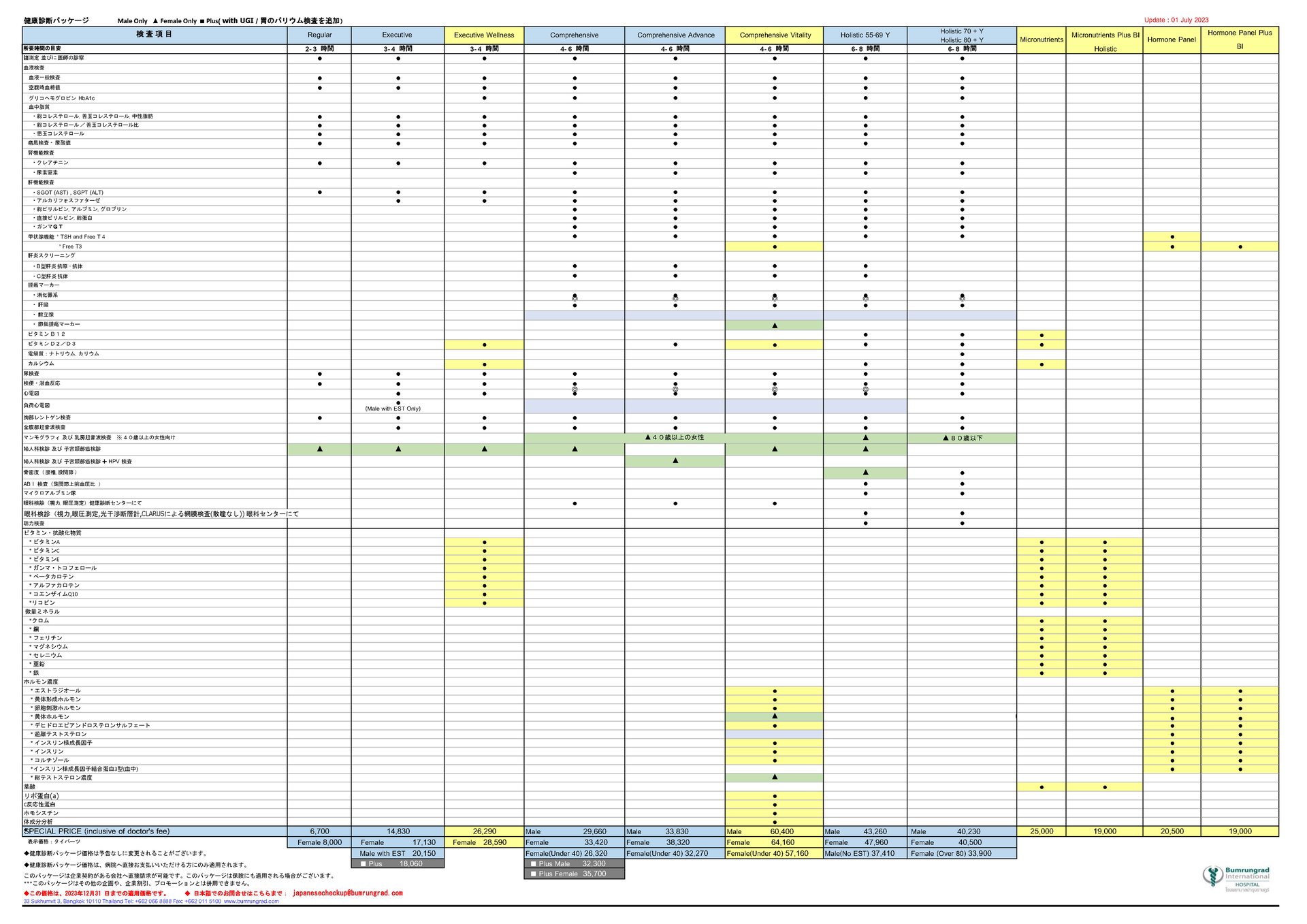 - 詳細情報が必要な場合、または健康診断プログラムのスケジュールを設定したい場合は、02-011-3388(日本語),+ 66 2011 2222(タイ語・英語)までご連絡ください。