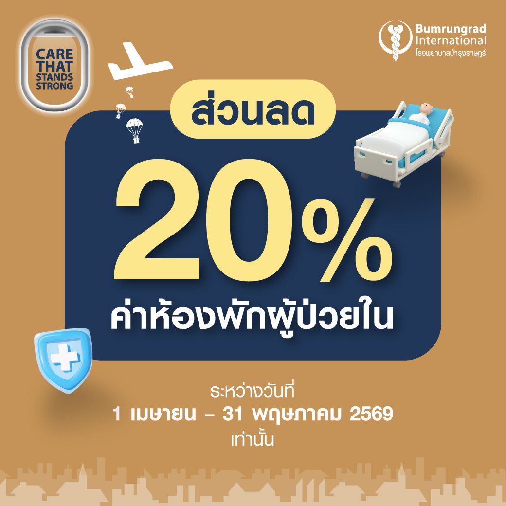 ส่วนลด 20% ค่าห้องพักผู้ป่วยใน