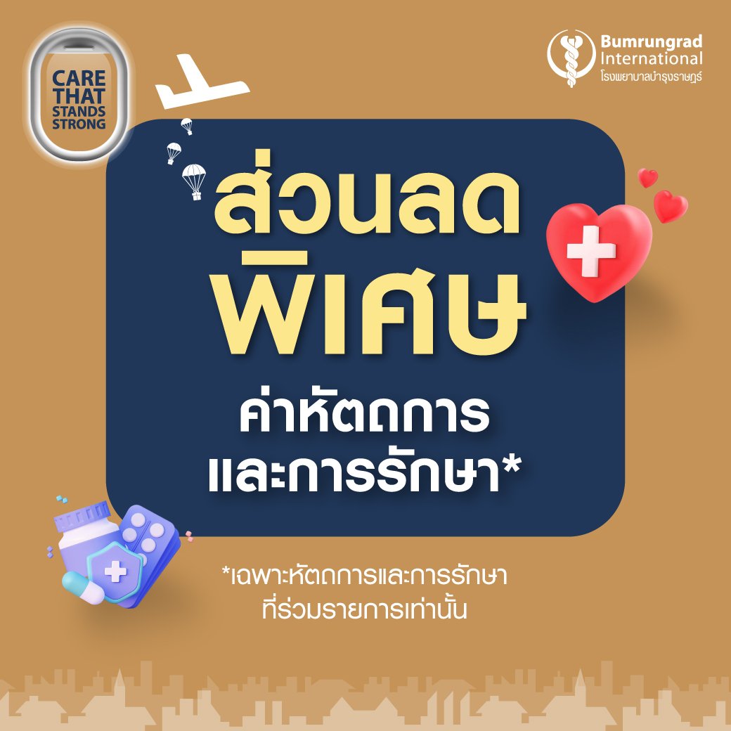 • กรณีใช้สิทธิ์ผ่านประกันหรือสถานทูต ค่าใช้จ่ายส่วนที่ผู้ป่วยต้องชำระเอง (out-of-pocket) จะได้รับส่วนลดค่าห้องพัก 20% ตามเงื่อนไขโปรโมชัน