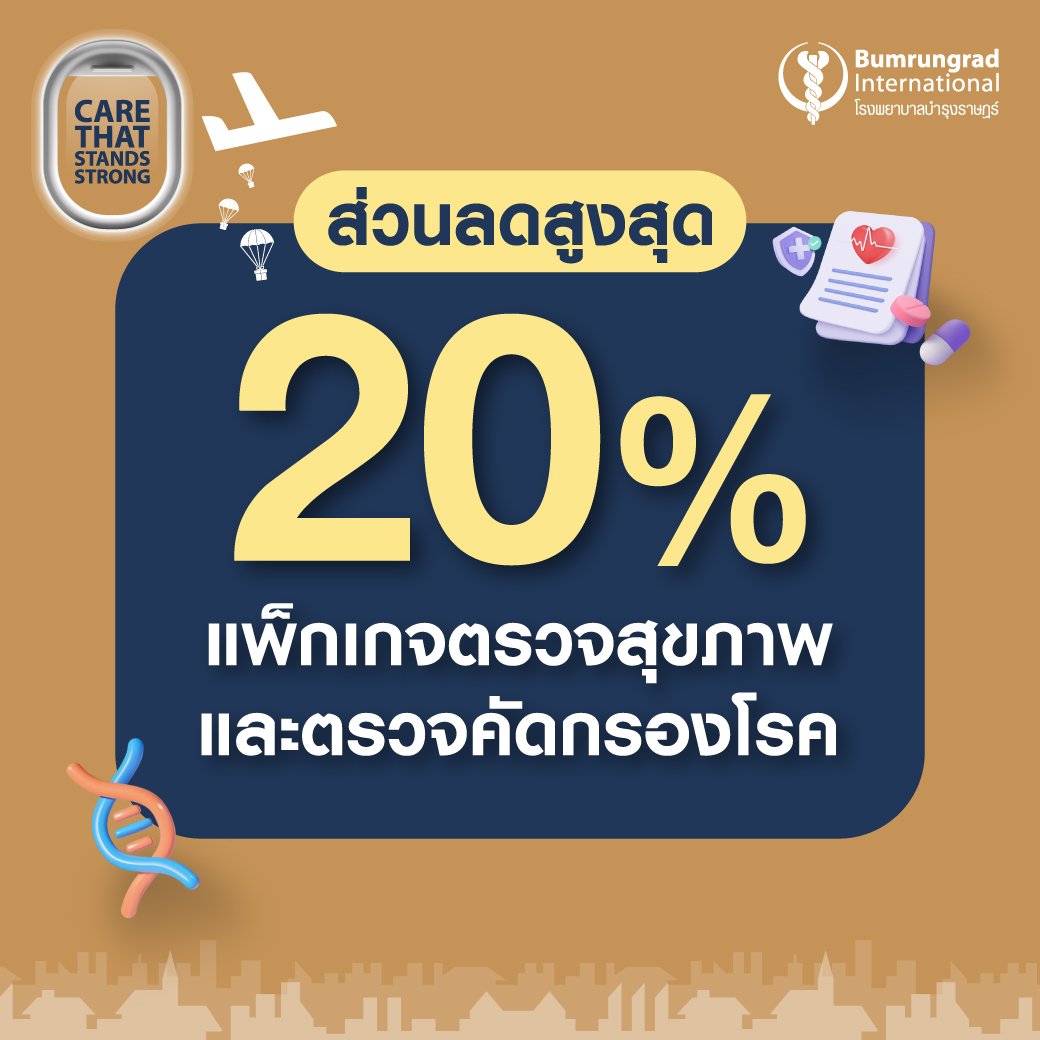 ส่วนลดสูงสุด 20% แพ็กเกจตรวจสุขภาพและตรวจคัดกรองโรค