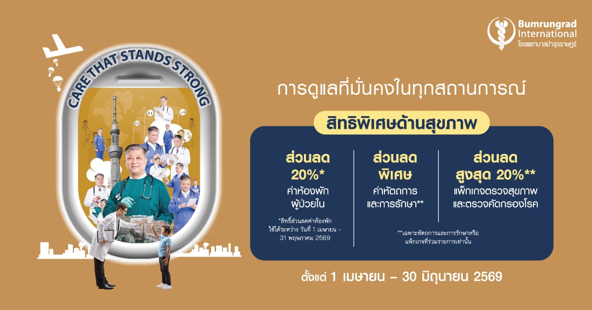 ในช่วงเวลาที่โลกเต็มไปด้วยความไม่แน่นอน สุขภาพคือรากฐานที่มั่นคงที่สุด​ โรงพยาบาลบำรุงราษฎร์ พร้อมดูแลคุณด้วยการตรวจสุขภาพเชิงลึก และเทคโนโลยีทางการแพทย์ระดับสากลเพื่อให้คุณและครอบครัวแข็งแรงในทุกสถานการณ์