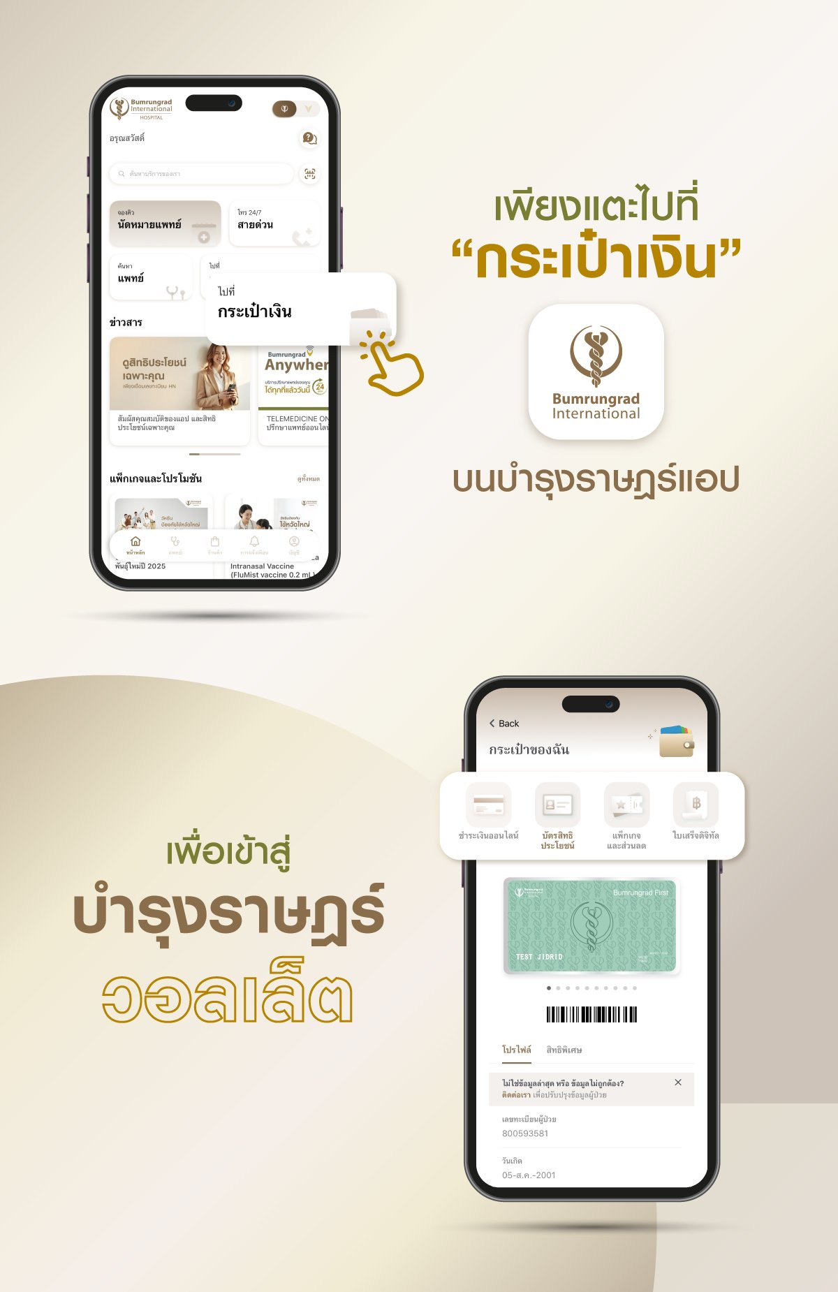 บำรุงราษฎร์ วอลเล็ต (Bumrungrad Wallet) มอบประสบการณ์ที่สะดวกสบายไร้รอยต่อ เมื่อมาใช้บริการที่บำรุงราษฎร์ พร้อมข้อเสนอพิเศษจากพันธมิตรชั้นนำของเรา โดยไม่ต้องพกบัตร เพียงดาวน์โหลดบำรุงราษฎร์แอปพลิเคชัน (Bumrungrad Application)
